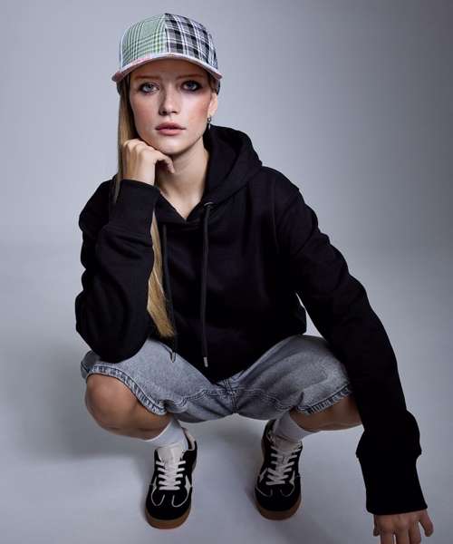 Shaped to fit. 320gsm. Peached fabric, soft-feel finish. Waffle knit hood. High polished, nickel free eyelets and drawcord ends. Polyester dyed to match tubular draw cord. Brushed fleece inner. Twin-needling detailing creates a high quality finish. Cut and sew two by one ribbed cuffs and hem. Kangaroo pouch pocket. Self-coloured neck size label.