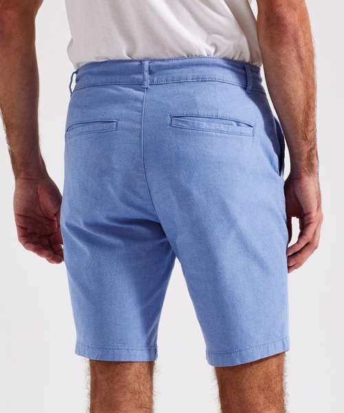 Men’s chino shorts with two swing pockets and two back jet pockets. Zip fly and button fastening to the front. Belt loops. Drawstring detailing. Product contains no branded neck label. Removable Kimble or looped garment tags. Inner seam label holds important product information on one label with a second label containing brand information which can be cut-away. Please note old stock may contain a fixed branded label.