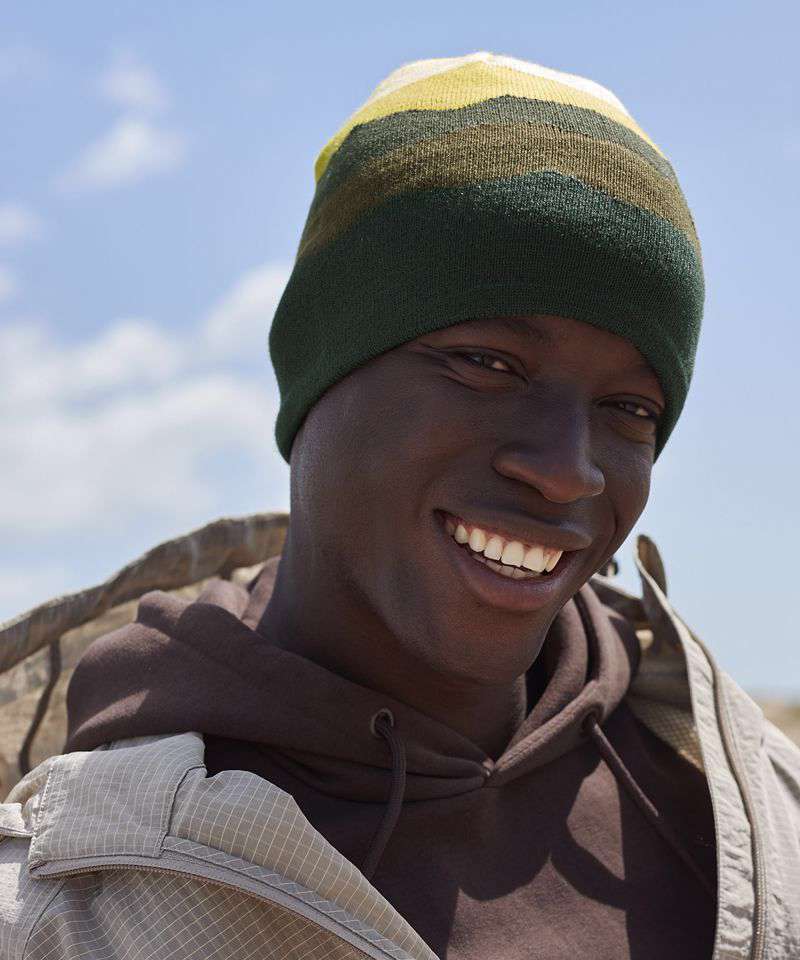 Whether you’re in mountainous high altitudes or back at ground level in the great outdoors, stay warm and protected in bold style. With its selection of mountainscape-inspired colourways, this beanie provides the perfect finishing touch to any outdoorsy ensemble – and, containing 100% recycled polyester.