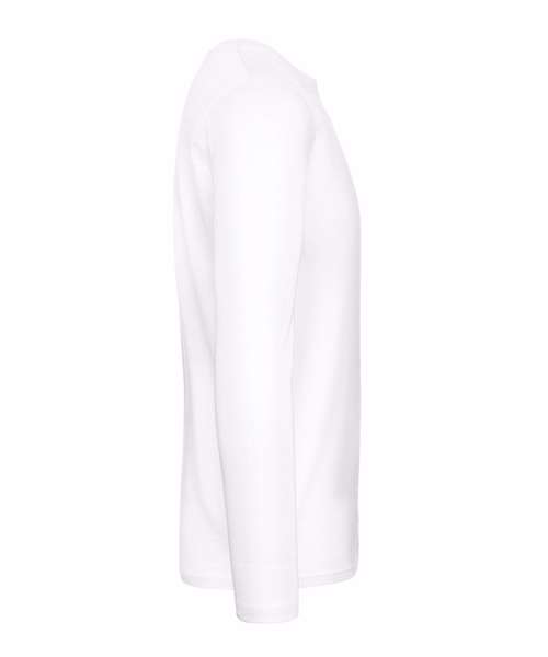 100% ringspun cotton long sleeved t-shirt. Single Jersey, tubular construction with a thin rib and collar for a modern appearance. Back neck tape for a clean finish.