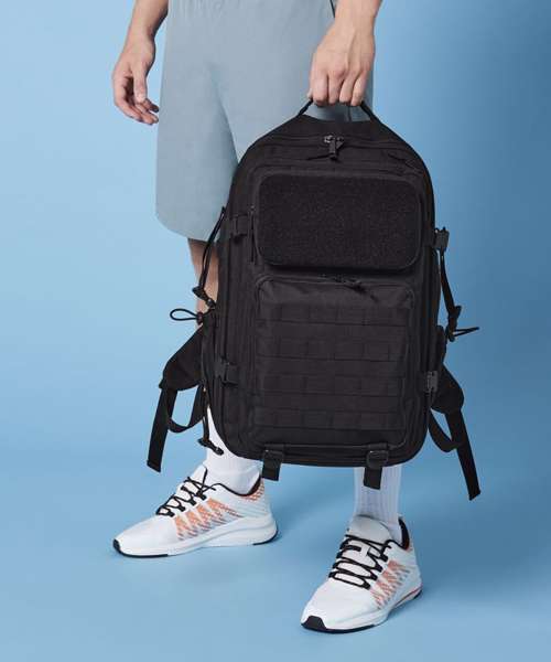 With its 35-litre capacity, the BG850 is extremely generous when it comes to storage space, but still comfortable when carrying thanks to its oversized ergonomic straps, padded back panel and fully adjustable chest strap. This military-inspired design features MOLLE webbing loop details, compression straps and a large top carry handle, as well as a full Rip-Strip™ front pocket designed for optimal customisation with interchangeable patches. As well as a large main compartment, the BG850 also has internal mesh pockets, multiple zippered front pockets, a padded laptop compartment and two tight-knit stretch mesh bottle/shaker pockets. This is an all-purpose backpack ready to take on everything from the commute to the gym.