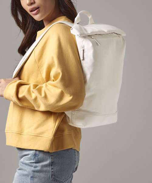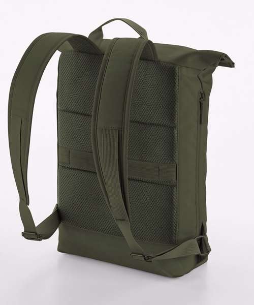 Contains 100% certified recycled polyester. Water-repellent fabric. Minimalist styling. Magnetic roll-top closure. Water-repellent coating. Padded laptop/tablet compartment compatible up to 11". External bottle pocket. Zipped side pocket for bottle/umbrella. Exterior zipped front pocket for easy decoration. Internal pockets. Internal slip pocket. Padded air mesh back panel. PU, self-coloured zip pulls. Rear luggage strap. Padded, adjustable mesh shoulder straps. TearAway label for ease of rebranding.