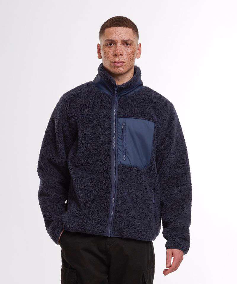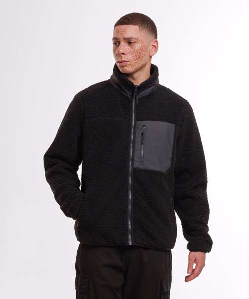 Cosy sherpa shell fabric. Warm internal fleece material. Unisex design. Functional zipped pockets. Stand-up collar. Nylon chest pocket. 30°C. Easycare.