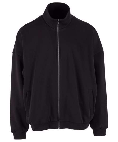 Oversized fit. Heavily dropped shoulders. Full metal-zip. Stand-up collar. Ribbed cuffs and hem. Half-moon at the neck.