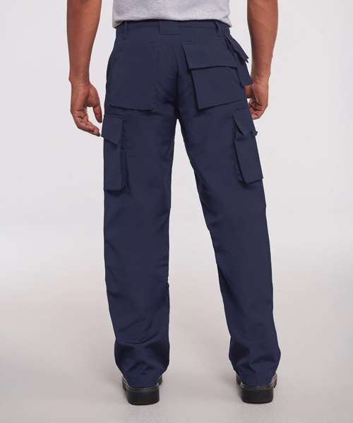 Suitable for 60°C wash and tumble dry. Stain resistant Teflon® coating. Internal pockets for knee pads. Triple stitched pocket opening and in seams for additional strength. Phone pouch below waistband. Cargo pockets on legs with multi compartments. 2 back pockets, 1 open, 1 with flap and hook and loop fastening for easy access. YKK zip.