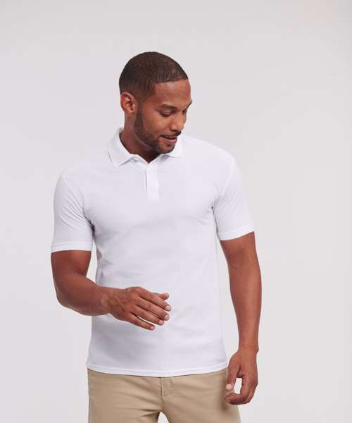 The Authentic eco polo is made from recycled polyester and cotton and is manufactured in Russell Europe’s own production facility. Thanks to more sustainable materials, extremely short European transport routes and full control over production, we have developed a polo shirt with less impact.