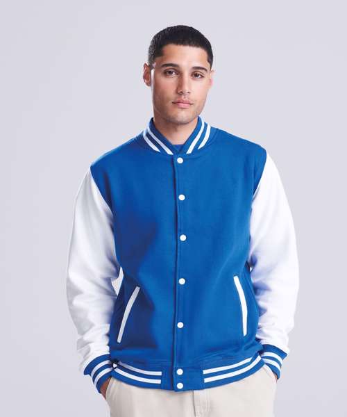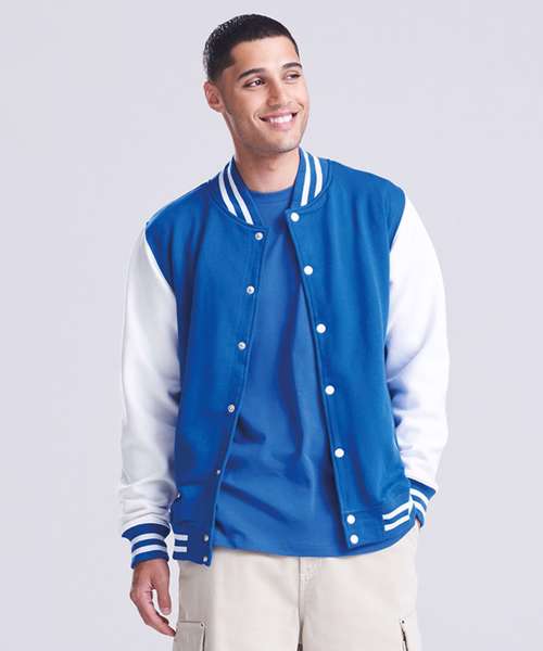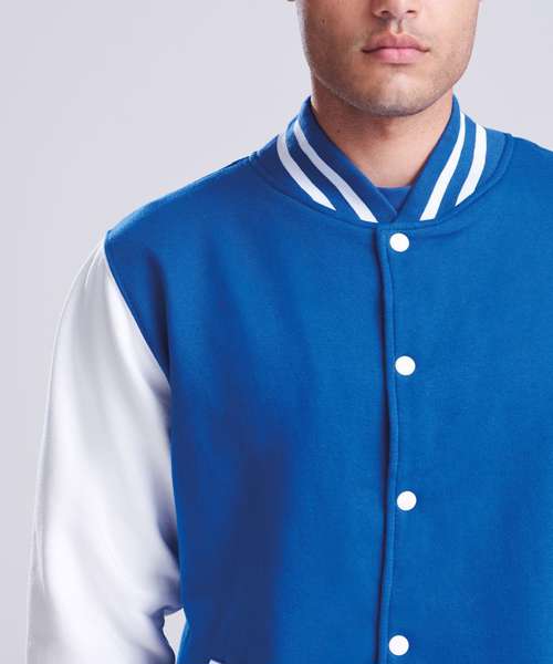 Get the varsity look with this classic American inspired jacket. Contrast sleeves and poppers complete this look which is fashioned from our heavyweight fabric which is ideal for decoration.