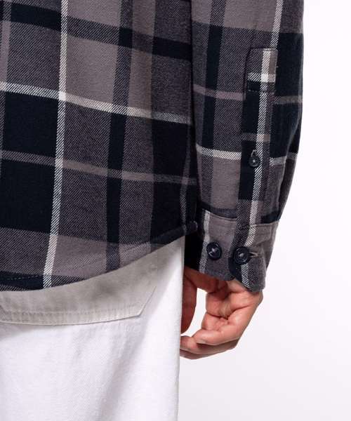 100% cotton flannel. Sherpa-lined body in 100% polyester. Lined and padded sleeves in 100% polyester taffeta. Very soft and warm shirt jacket. 2 flap chest pockets. Classic button placket. Adjustable buttoned cuffs. Rounded hem. No brand label at neck, only size tag for easy relabelling. Certified STANDARD 100 by OEKO-TEX® N° CQ 1007/8, IFTH.