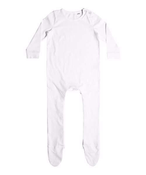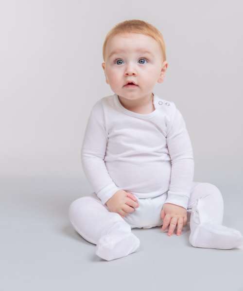Long-sleeved sleepsuit made in organic cotton. YKK popper fastening on the shoulder and around the leg opening. Set-in feet. Binding around the neck and self-fabric cuff on the sleeve.
