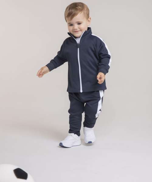 This striking contrast panelled tracksuit combination is enough to make a mini athlete! For leisurewear or sports clubs.