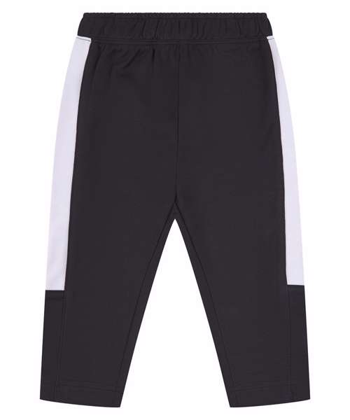 Kids' track bottoms with contrast panels down the outer legs. Elasticated waistband. Plain hem.