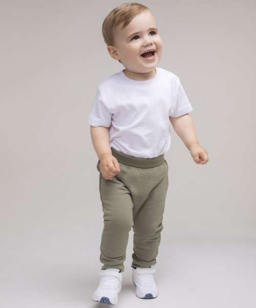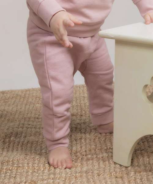 Kids' joggers made in recycled fabric with self-fabric knitted rib at folded waistband and cuffs. Gusset panel. Tag-free.