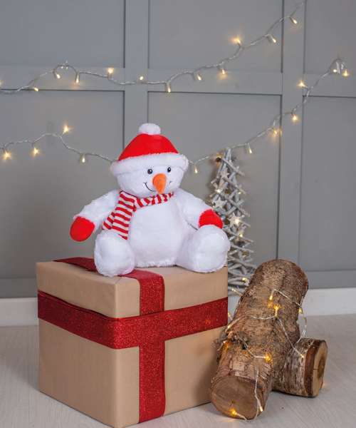 Take the chill off with a snowy cuddle off our Zippie snowman. Wrapped up with a stripy knitted scarf, festive bobble hat and soft-carrot nose. Designed with zip access around the base for direct decoration access.