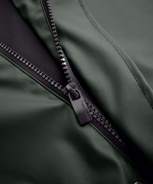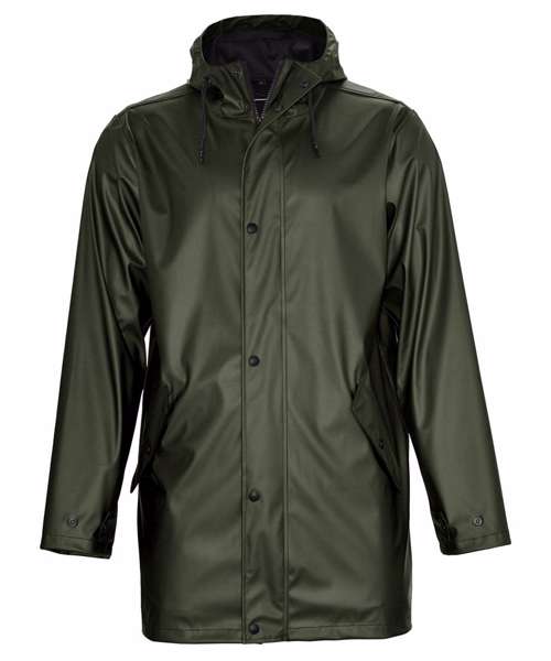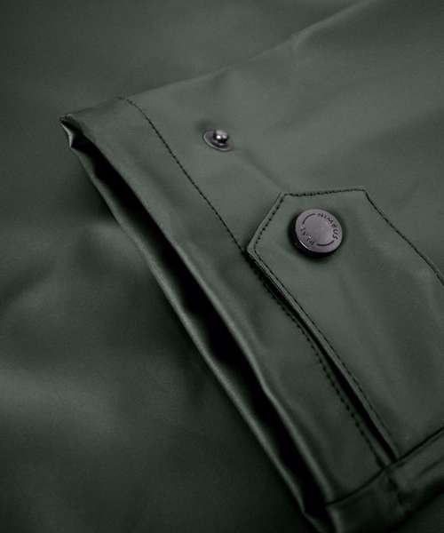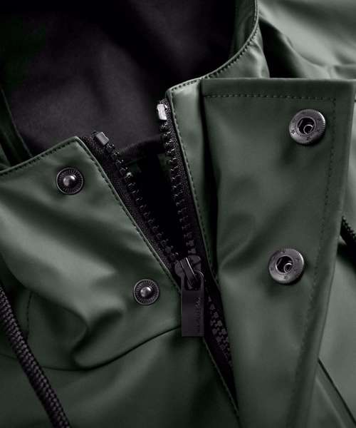 Waterproof. Welded seams. Quality main zip. Buttons on the front placket. Pockets and sleeve straps. Adjustable hood. Water-resistant.