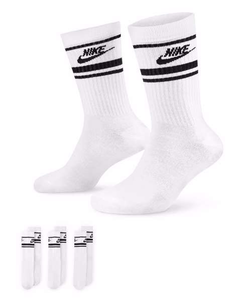 Nike Dri-FIT Sportswear everyday essential socks (3 pairs) with Dri-FIT technology that helps to keep your feet dry and comfortable. Reinforced heel and toe provide durability. Strategically-placed mesh adds breathability.