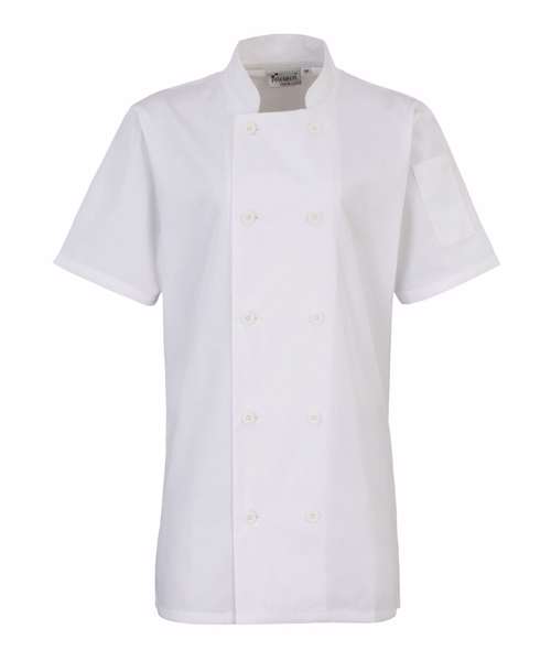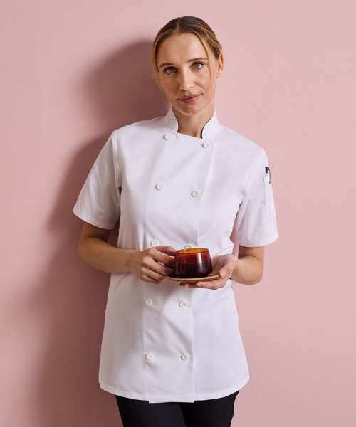 A welcome addition to the existing Premier range of chefs wear, this short sleeved jacket is designed for women. Offering a neater fit around the upper arm, waist and bust areas, this jackets is still comfortable and roomy enough to work in pressurised kitchen environments.