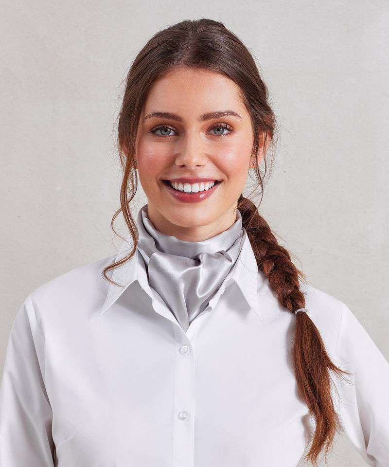 A ladies' plain business scarf that has a satin feel to the fabric. This scarf can be worn in a number of ways on the neckline and comes in 18 vibrant colours to match your corporate colours. A width of 25cm and a length of 140cm.