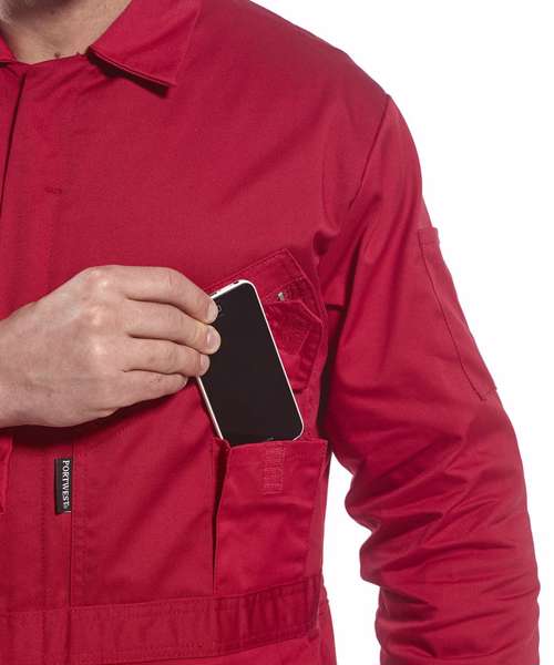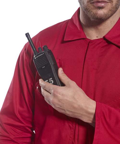 The pre-shrunk top quality fabric contributes to the professional appearance of this garment. Various pockets and a hammer loop complement the all-purpose styling.