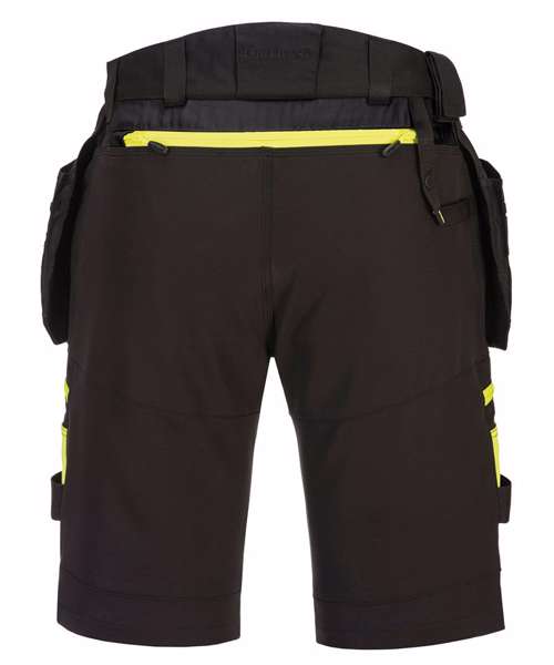 DX4 Detachable holster pocket shorts are cleverly designed and use the targeted placement of dynamic 4X stretch fabric to provide maximum range of movement when working. They feature a high-rise back waistband with side elastication, ensuring protection in all working positions, and are triple-stitched throughout, for maximum durability.