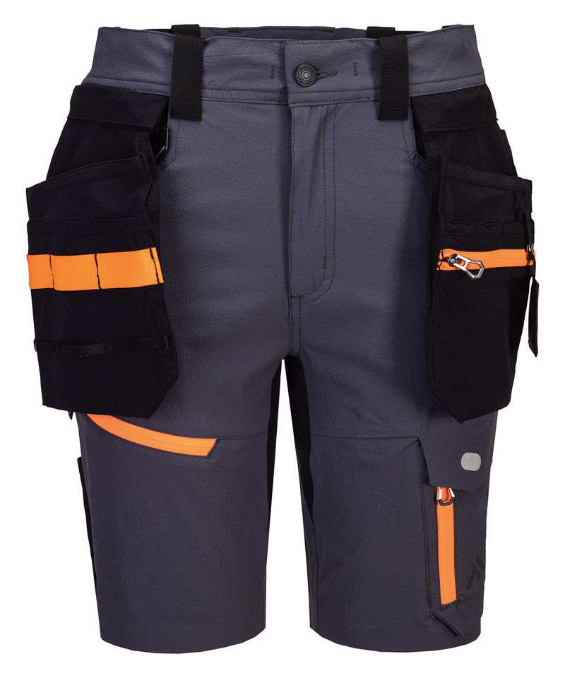 Four-way stretch nylon fabric for added durability and ease of movement. CorePro reinforced holster pockets with webbing loops for tools. Lightweight for enhanced wearer comfort. Pockets with magnetic flap closure for added security. Interchangeable holster pockets allow for customisation of placement. Handy waistband D-ring for keys or ID cards. Lasercut holes for added ventilation. Stretch crotch gusset provides maximum flexibility and reduces stress. 10 pockets for ample storage. Two side pockets. Zip-off holster pockets for added versatility. One loop for ID card, keys or tools. One D-ring for keys, tools or ID badge holder. One hammer loop. One ID card holder. Two back pockets with one open and one featuring a flap. One thigh pocket with zip closure. One rule pocket. One spanner pocket. Triple-stitched seams for extra durability. Multiple utility pockets provide ample storage. Side elastic waist for ultimate wearer comfort. Ventilation channels. ID card holder for ID card display. Pockets with magnetic flap closure for added security.