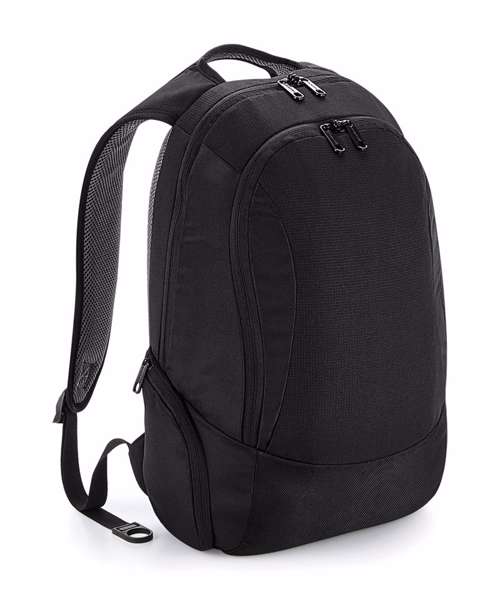 TearAway label for ease of rebranding. External access padded laptop compartment. Plush lined laptop pocket. Laptop compatible up to 15.6". Elasticated cable organiser. Key hook. Internal organiser section. Zippered internal valuables pocket. Zippered side pockets. Lockable zip pullers. Ergonomic padded back panel. Padded adjustable shoulder straps.