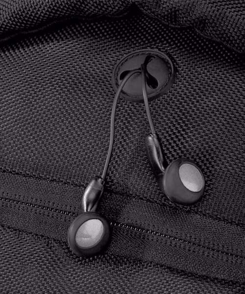 - Laptop compatible up to 15.6=Media pocket and headphone port=Front pocket organiser section