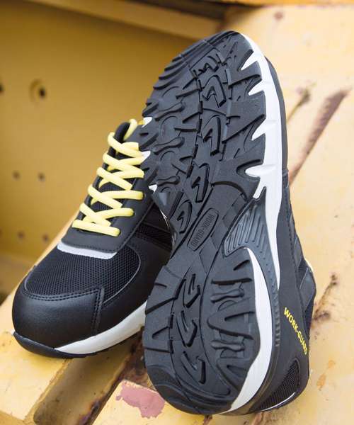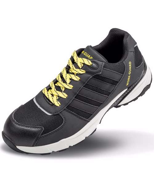 Lightweight SP1 Safety Trainer. EN 20345:2011 S1P SRC. Upper: High Quality PU with Durable Mesh. Toe Guard: Rubber. Toe Cap: Composite. Mid Sole: Composite. Outer Sole: EVA/Rubber. Laces Yellow/Black. Spare laces: Grey/Yellow and Black/Grey.