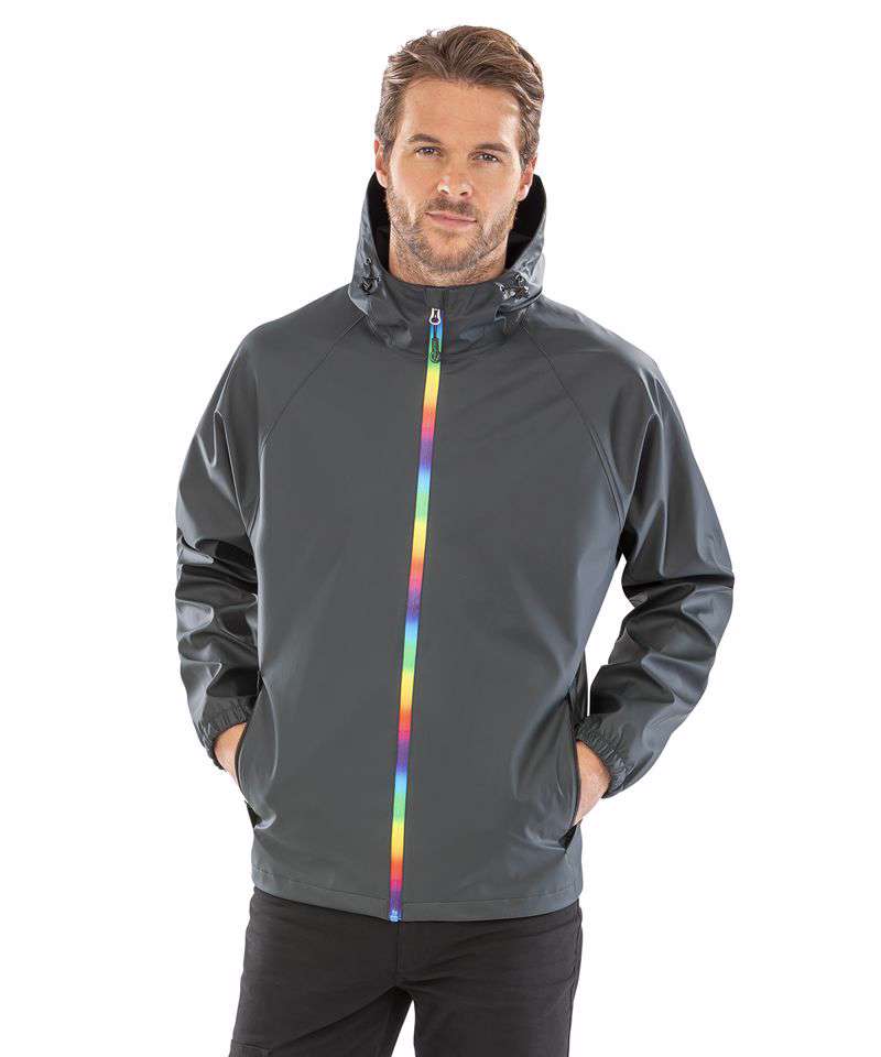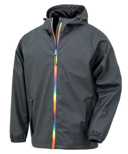 A classic-style waterproof jacket with a bold technicolour zip – wear it with pride!