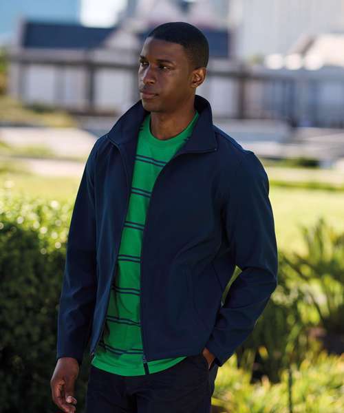 Lightweight jersey backed softshell fabric. Softshell stretch light fabric technology. Durable water repellent finish. Wind resistant. Super soft handle. Quick drying. Lightweight and easy to wear. 2 Zipped lower pockets.