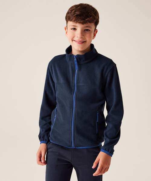 The Junior Ablaze softshell suit from Regatta Professional is designed for little adventurers. Stretchy and warm on the back, the softshell fabric stays comfortable for kids during their activities. Reflective details enhance visibility.