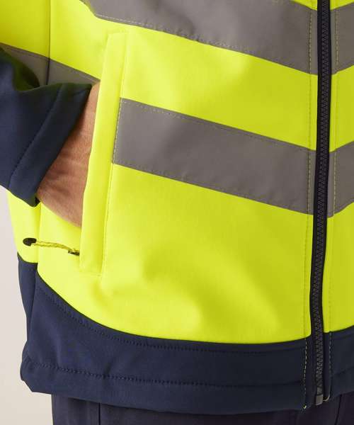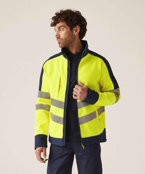 This Regatta high-vis pro softshell jacket combines comfort, protection and visibility. The softshell fabric helps you move with ease and the3-layer membrane keeps rain at bay.
