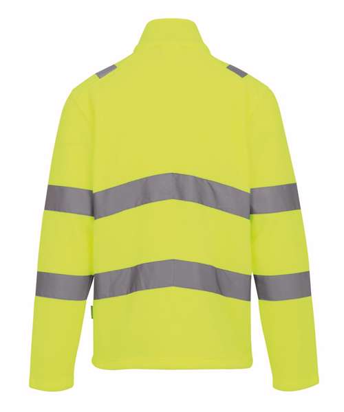 280 series anti-pill Symmetry fleece. Certified to EN ISO 20471:2013 A1:2016 Class 3. Orange colourway also conforms to RIS-3279-TOM. Two zipped lower pockets. Made with recycled content. ID Reflection – angled chevrons inform whether you are facing forwards or away.