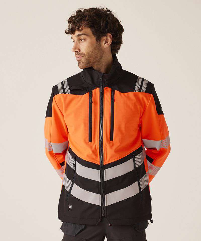 The Hi-Vis X-Pro 3-layer softshell jacket (Class 2) from Regatta Professional combines high-visibility technology and weather protection. Engineered with a state-of-the-art 3-layer softshell in a water-repellent finish, it’s perfect for outdoor work – the durable and warm grid fleece backing keeps you cosy. Boasting a detachable hood and pit zip for optimal comfort, this work jacket adapts to your needs; and it doesn’t compromise on functionality, complete with a radio loop for convenience and an impressive six pockets for seamless storage. Cutting-edge ID reflection technology ensures easy identification in low-light settings.