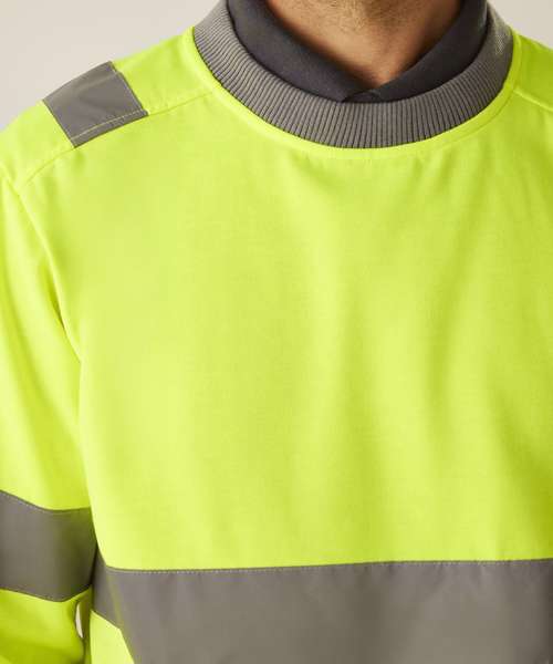 The Hi-vis Pro contract crew neck sweatshirt, from Regatta Professional, delivers comfort, visibility and durability on the job. It’s made from brushed polyester fleece and features a classic crew neck and ribbed trims. Certified for safety.