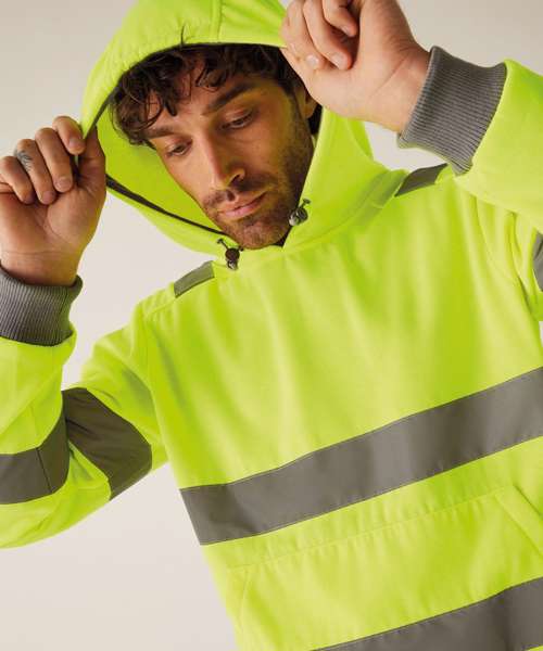 The Hi-vis Pro contract hoodie, from Regatta Professional, is certified for workplace safety and built for all-day comfort. It’s made with brushed fleece and features an adjustable hood, ribbed trims and a front kangaroo pocket to keep you warm and ready on the job.