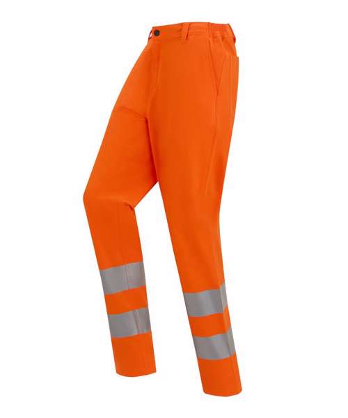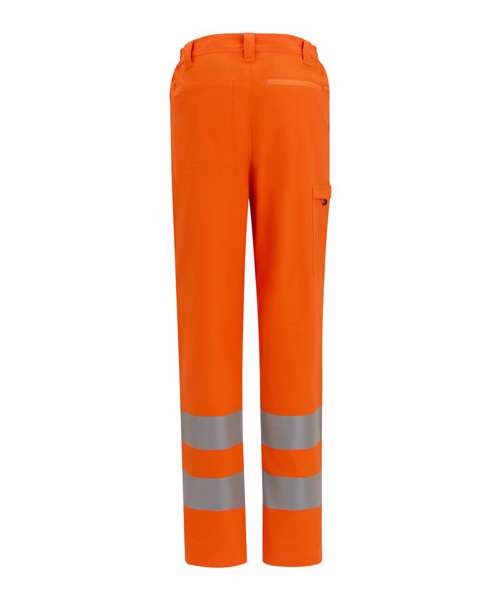 EN ISO 20471:2013 + A1:2016 Class 1. Durable heat-applied reflective tape. Elasticated waistband. Strategic seams with triple stitching. Shank button at waist for extra strength. Lower leg cargo pocket. Two back pockets. Extendable hem offering a choice of leg lengths. Durable heat-applied reflective tape. Contains recycled polyester.