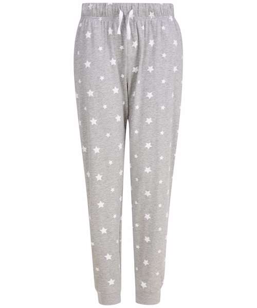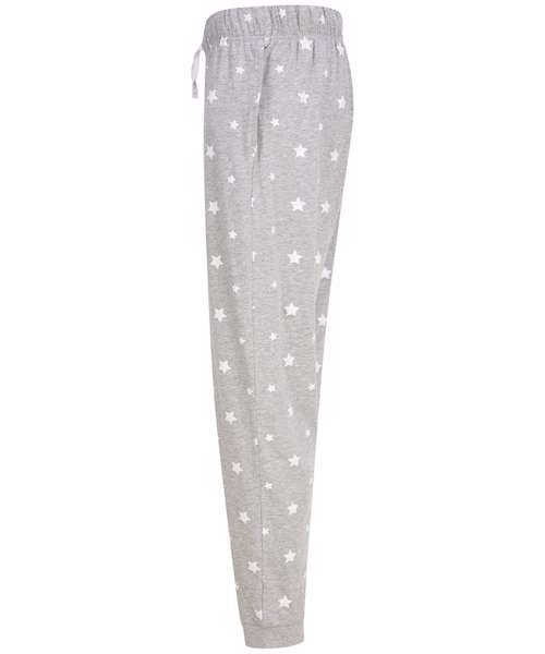 Stretch lounge pants with elasticated waistband and drawcord. Self-fabric cuffed hem with side seam pockets. Tear-out label.
