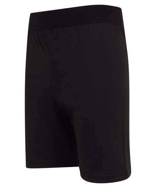 Kids fashion cycling shorts. Soft elastic jacquard waistband, suitable for printing. Non-transparent stretch polyester fabric. Tear-out label for easy re-branding.