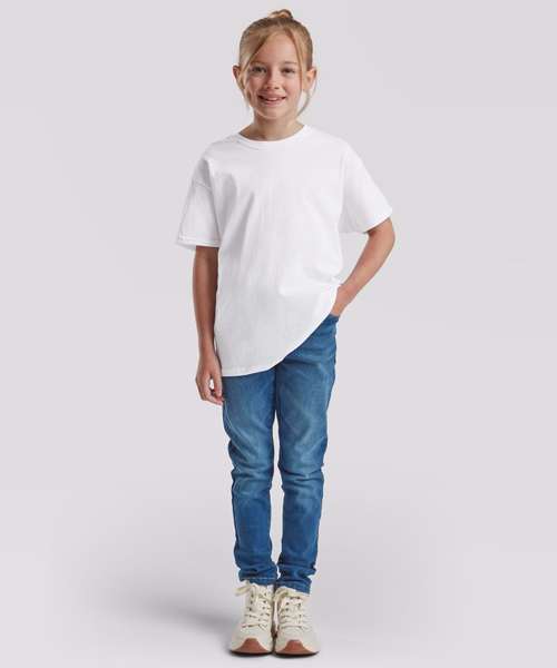 With a fine knit gauge for enhanced printability, the kids Valueweight T is perfect for retail, licensing, tourism and more. Details include a crew neck with cotton/ Lycra® rib and a self-fabric back neck tape for comfort. This garment is available in a wide range of colours, all of which complement Fruit’s Valueweight T, so you can make it yours to match.