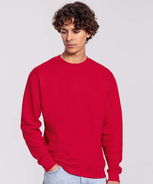 Classic fit. Crew neck with elastic neck rib. Tear-away label. Soft 100% combed ringspun cotton face for best decoration results. Brushed inner fleece. 1x1 rib at cuffs and hem with Lycra for superior comfort. Made with CiCLO® fibres.