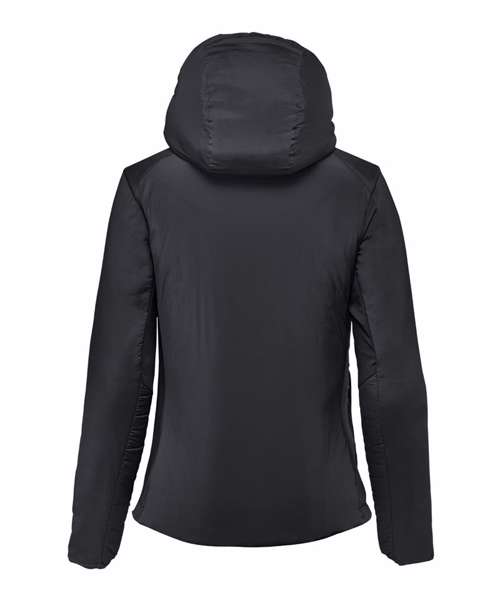 Stormtech Thermal Shell™ insulation. Durable water-repellent finish. High-performance stretch woven outer shell. Full-coverage attached hood with easy-lock adjustment. High-density brushed-back knit panels. Articulated elbows. Underarm gussets. Zipped on-seam handwarmer pockets. Single-hand hem adjustment. Partially elasticised cuffs. Contoured seaming. Contains recycled materials.