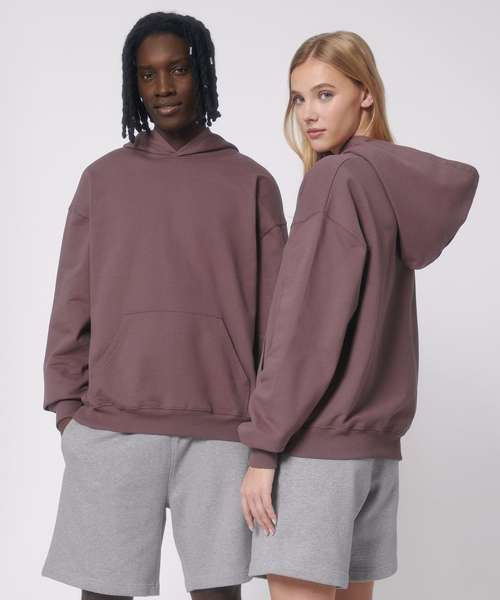 The unisex oversized boxy dry hand-feel hoodie sweatshirt with double-layered hood offers a relaxed feel with stylish details.