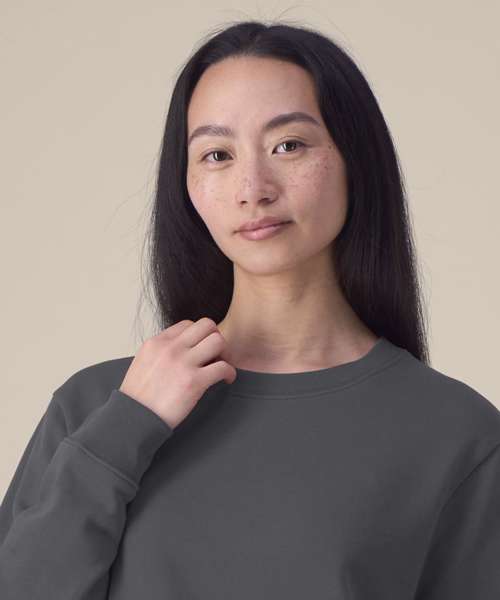 The Stella Thinker is a women’s recycled sweatshirt crafted from a soft recycled cotton blend. With its clean, medium fit and soft hand feel, it offers lasting comfort and everyday versatility. Designed for businesswear, lifestyle and branded collections, it features set-in sleeves and structured 1x1 rib finishes, plus twin-needle topstitching at key seams for shape retention. The herringbone back neck tape and self-fabric half moon add refined interior details. Built for comfort and durability, this sustainable sweatshirt provides a smooth, reliable base for embroidery or print – ideal for corporate branding and sustainable collections.
