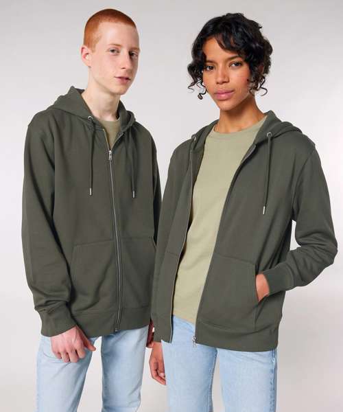 The modernised unisex Cultivator 2.0 iconic zip-thru hoodie sweatshirt – now in 100% organic cotton, with a new modern medium fit and wider rib at the hem and sleeve cuffs, as well as improved drawcord quality and closed metal drawcord endings. It also offers better decoration results than before, plus a deep and vibrant colour palette to choose from.