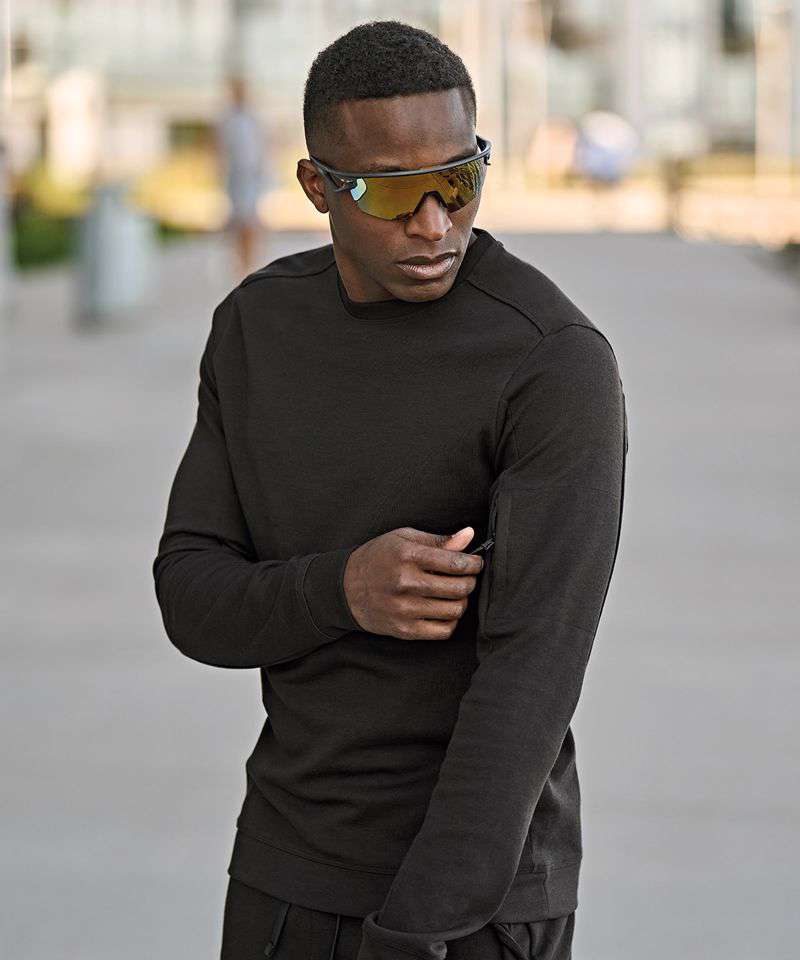 The Athletic crew neck sweatshirt is made from a cotton/polyester blend for softness and durability, featuring a zipped sleeve pocket and a small bottom hem. The functional design complements leisurewear, yet is also suitable for staff clothing, keeping it both stylish and practical.