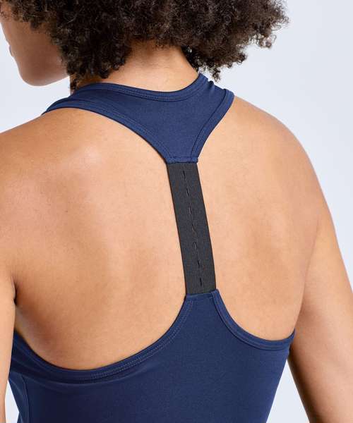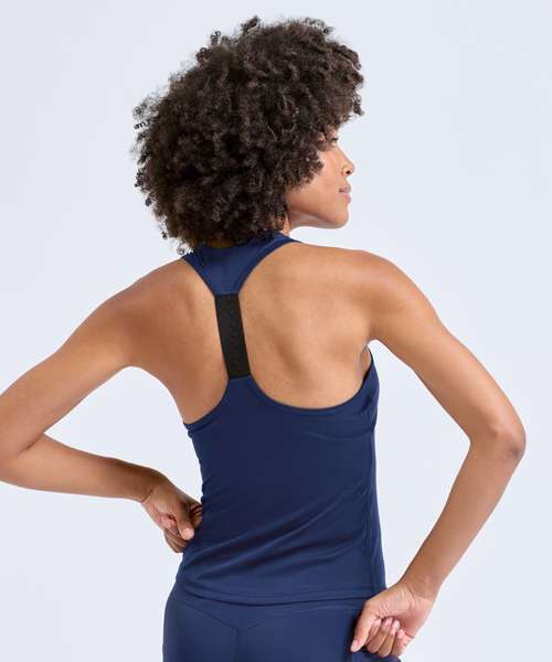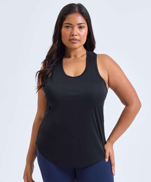 The women's TriDri® performance strap back vest features sweat-wicking fabric and a modified racerback with an elastic strap to help keep you cool and moving freely from your first set to your last.