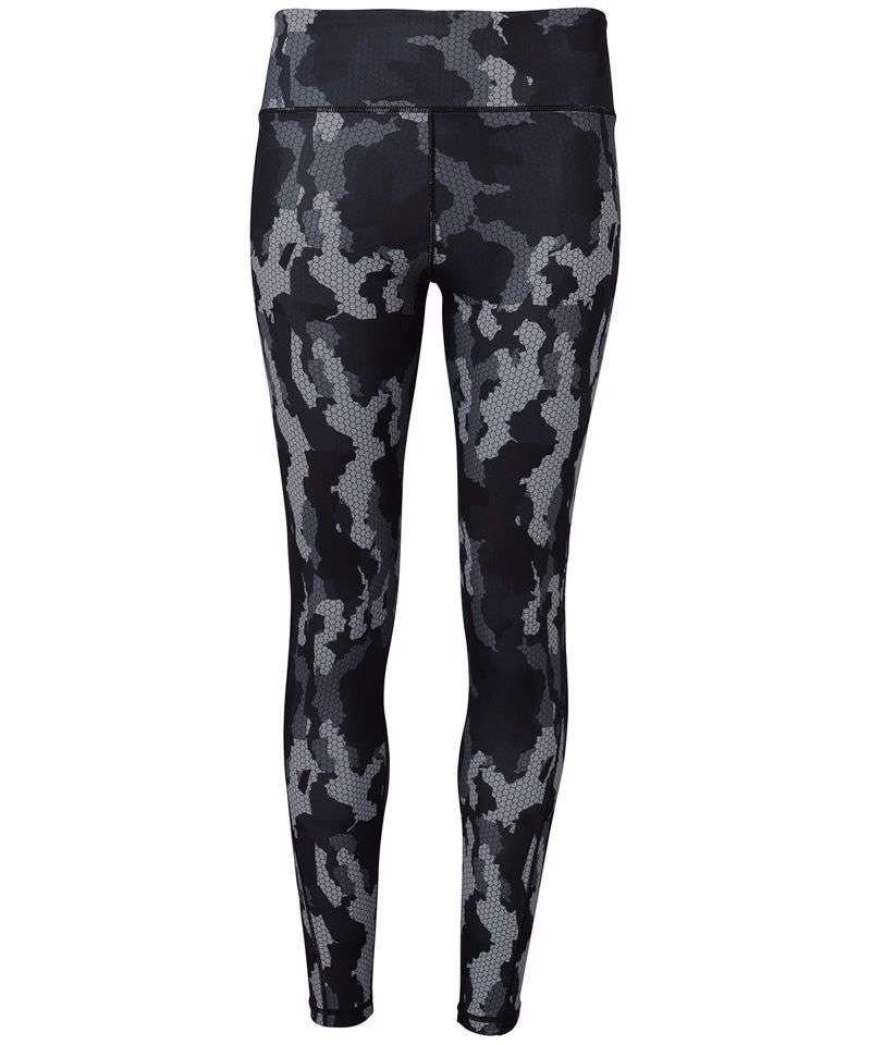 Full-length leggings. Soft-stretch fabric. Elasticated waistband. Inside coin pocket. Contrast overlock stitching. Hexoflage® camo print. We recommend using block out vinyl and inks.Product contains no branded neck or waist label. Removable Kimble or looped garment tags. Inner seam label holds important product information on one label with a second label containing brand information which can be cut-away.
