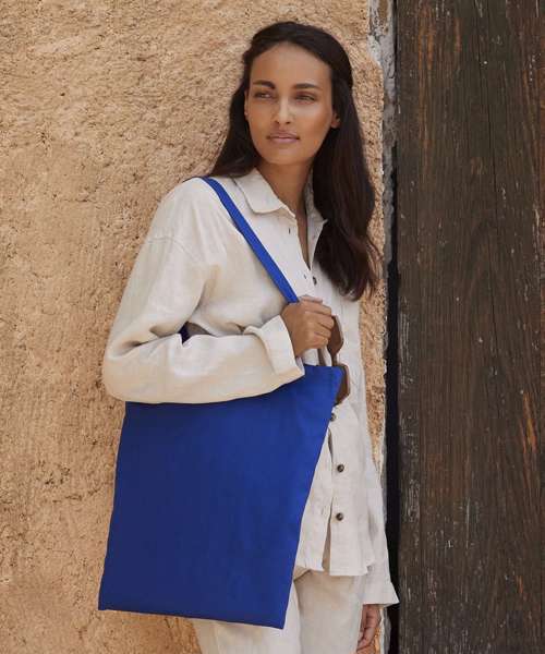 Superior print surface for optimal decoration. Premium cotton for enhanced durability. Can be carried by hand or over the shoulder. Handle length - 67cm. 100% Certified organic cotton.