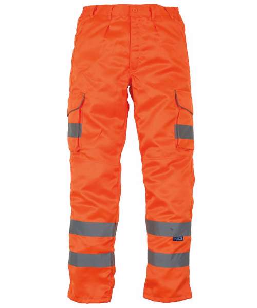 Hi Vis Yellow & Orange conform to EN ISO20471:2013 Class 1. and Orange also conforms to RIS-3279-TOM. Black & Navy provide an enhanced visibility for safety. 80/20 Polycotton fabric treated with durable water repellent finish. Two 5cm width 3M reflective tapes on the bottom of each legs. Partly elasticated waistband with 5 belt loops. Match-colour zip fly & button. Two cargo pockets with extra reflective tape & border trimming to enhance the visibility. Knee pads pocket with concealed access. Rear pocket with button fastening.