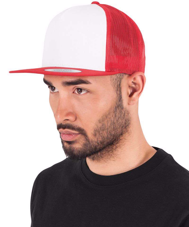 This classic trucker with white front panel is great for screen printing and embroidery. Breathable and comfortable thanks to the classic mesh and the back-quilted sweatband, the 8-rows of stitching on flat visor gives it a quality Flexfit® finish.